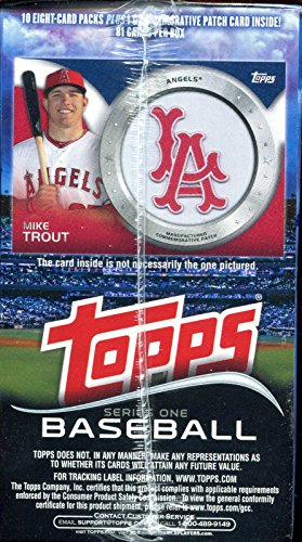 This is a BRAND NEW 2014 Topps Series #1 MLB Baseball Unopened Blaster Box that contains 10 packs with 8 cards per for a total of 80 cards plus a Bonus Exclusive Commemorative Patch Card!