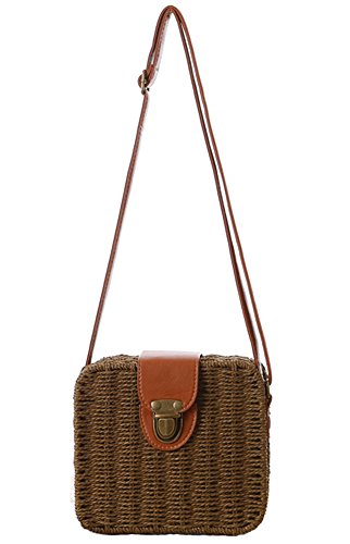 -. Title : Obosoyo Women Retro Summer Straw Bags Small Box Cross Body Bag Beach Sea Shoulder Messenger Satchels
