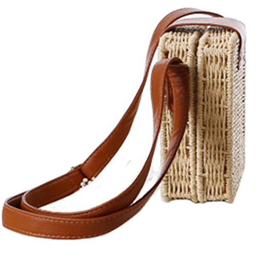 -. Feature : Material: 100% Eco-Friendly Straw, makes you feel closer to nature. / This straw beach sea handbag comes with an adjustable strap, you can adjust the length as you like. / Push locked closure, easy to use, safe for your belongings. / Dimensions: 7.1" x 2.8" x 6.3", Strap Length: 51". Small box shape, suitable for beautiful summer days. / Fashion design, summer beach style, easy to match, you will love this small crossbody bag!