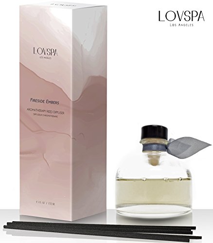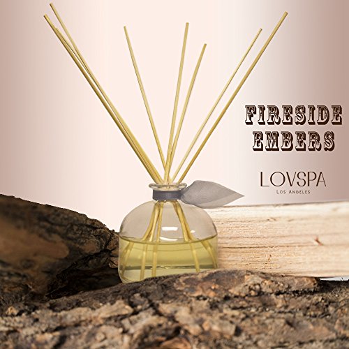 Fireside Embers Reed Diffuser Set by LOVSPA | Wood Smoke, Spiced hickory & Saffron Suede with a Touch of Amber Cognac | Smoky Firewood Scent! Great Gift Idea for Dad, Husband, Mom or Wife!