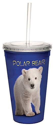 Tree-Free Greetings 35776 Eric Isselee Polar Baby Bear Double-Walled Cool Cup with Reusable Straw, 16-Ounce