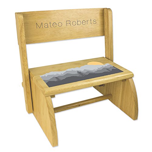 Product Description Our MyBambino Personalized Natural Flip and Folding Step Stool with Misty Mountain Design can be used as both a stool and a seat. Easy to transport between bedrooms, kitchens, and bathrooms. 0