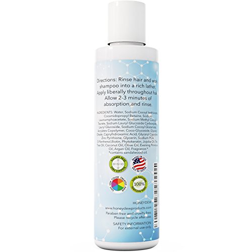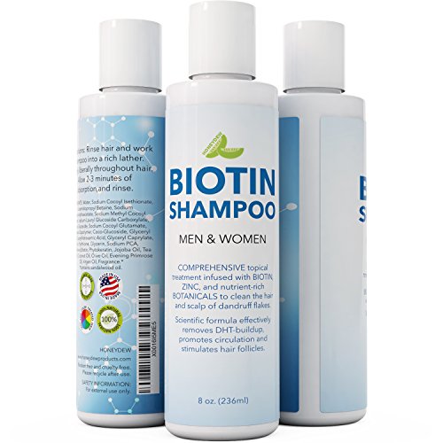 -. Binding : Misc. -. Brand : Honeydew -. EAN : 0806810286517 -. Feature : EFFECTIVE HAIR SHEDDING TREATMENT Our shampoo is formulated to reduce hair loss and promote hair growth. This hair loss treatment works by blocking DHT - a major cause of hair loss and by nourishing scalp for hair that is strong shiny and smooth. / POWERFUL SHAMPOO WITH ACTIVE INGREDIENT BIOTIN is combined with zinc to improve hair growth and reduce breakage and rejuvenate hair, for the thick and full hair you are after. / ANTI-DANDRUFF FORMULA This color safe shampoo also contains dandruff fighting ingredients such as rosemary essential oil and tea tree which work together to clarify and balance the scalp, for reduced flakes and itchiness. / PROMOTES HAIR GROWTH The active ingredient Biotin and Zinc two are combined with essential oils rosemary evening P.R.Imrose oil and green tea extract as well as argan oil to fully nourish and hydrate hair thereby encouraging new hair growth. / MONEY BACK GUARANTEE we take customer satisfaction very seriously. Quality is important to us which is why our shampoo is made in a facility that exceeds cGMP standards. If you are unsatisfied for any reason return this product for a full refund. -. IsAdultProduct : 0 -. Label : Honeydew -. Manufacturer : Honeydew -. MPN : Biotin Dandruff Shampoo - Light Blue -. PackageQuantity : 1 -. PartNumber : Biotin Dandruff Shampoo - Light Blue -. ProductGroup : Beauty -. ProductTypeName : BEAUTY -. Publisher : Honeydew -. Studio : Honeydew -. Title : Premium Biotin Hair Growth Shampoo With Anti Dandruff Benefits - Hydrating Hair Loss Treatment - Block DHT & Reduce Shedding With Nourishing Coconut Oil & Tea Tree & Argan Oil For Men & For Women -. UPC : 806810286517