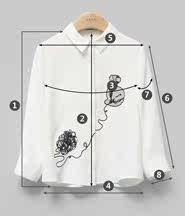 尺码 ①前衣长 ②后中长 ③胸围 ④下摆围 ⑤肩宽 ⑥袖长 ⑦袖臂围 ⑧袖口围