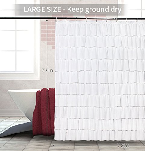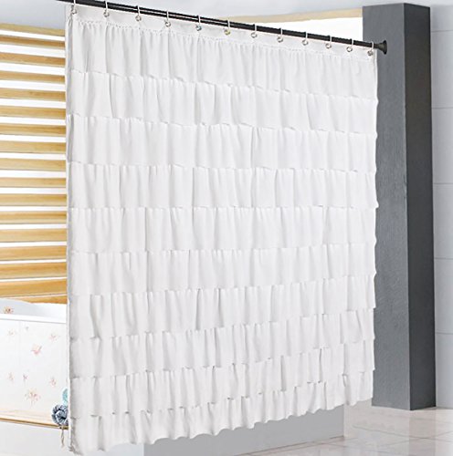 Volens White Shower Curtain Fabric/Ruffle for Bathroom,72in Long