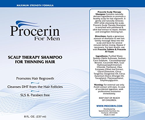 Procerin is effective in reversing hair loss in men caused by androgenetic alopecia, the most common cause of male hair loss. Procerin is scientifically designed to help men retain and regrow their hair, and stop hair loss in its tracks. No harsh chemicals, no messy sprays, and no sexual side effects. Procerin for Men consists of two separate components that can be used individually or together, for best results. Procerin tablets and Procerin Shampoo work together synergistically to reverse hair loss and help you regain your hairline. By fighting hair loss internally through an oral supplement and externally through a Shampoo, you fight hair loss from all fronts and have dramatically better results than using a single product. This specific Procerin Hair Loss System consists of the following items: - 6 bottles of the Procerin oral supplement (1 month each) - 2 bottles of Procerin Shampoo ( 8 fl.oz each)Feature