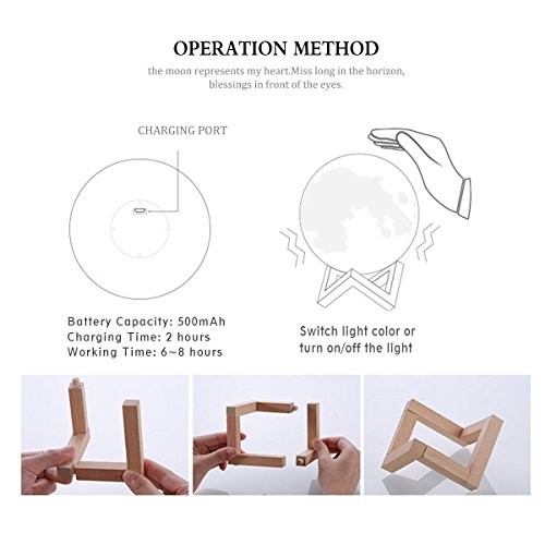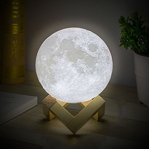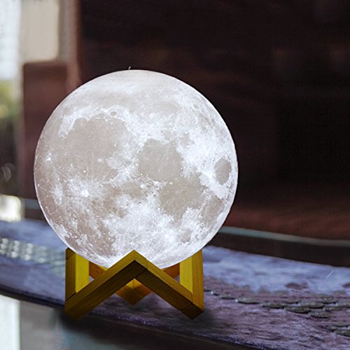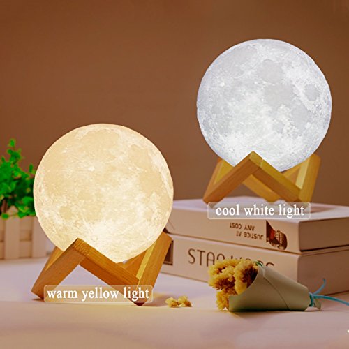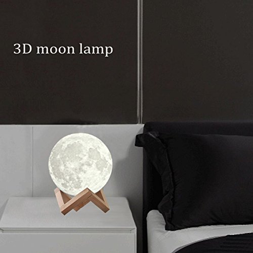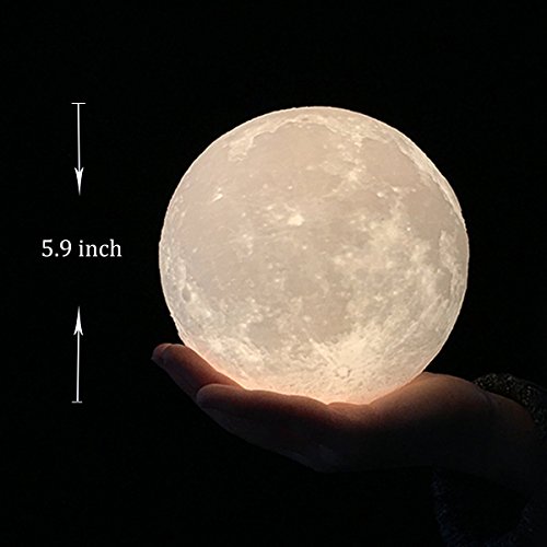 -. Feature : 【3D Injection Molding Technology】 This Moon Lamp is based on photos captured by NASA satellite, using 3D injection molding technology, present moon surface vividly. The moon has been a divine and enchanting symbol, it brings you lucky and happiness. Unique moon shape makes the room full of fun, cute gifts for kids or baby. / 【Vibration Control and 3 Colors】 Cool White, Warm White and Warm Yellow lighting color to match your mood or any occasion, changing color just slapping the product surface. This is a cool thing, because you no longer need to look for button and touch it, just tap the surface of the moon lamp. / 【Rechargeable Night Light】 Bulit-in rechargeable battery provides 6-8 hours illumination, only 2 hours to fully charge. Standard USB charging port for PC, charger and mobile devices, etc. USB-chargeable for use anytime, anywhere. The cordless table lamps make it easy and convenient for outdoor and home decoration. / 【Good Gift and Decorative Lamp】 A great gift for your friends, kids and families on Christmas, holiday, birthday party, valentine's day, wedding or anniversary. A creative decorative night light for home, kids bedroom, living room, dining room, nursery room, office, college dorm and create a wonderful atmosphere beyond your expectations. / 【Environmentally Friendly Material Soft Nursery Lamp】 Made of non-toxic, odorless eco-friendly PVC+ABS material. Energy-efficient LED table lamps create a flicker-free and comfortable light. Adjustable lighting color between warm yellow and cool white to create the ideal sleep environment for your baby and families . A best baby nursery lamp to care eyes and save money.
