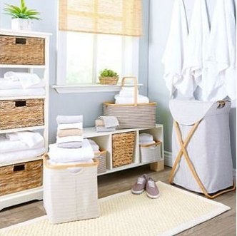 Clutter Busters Foldable Eco Fabric/Bamboo Trimmed Laundry Hamper with Lid