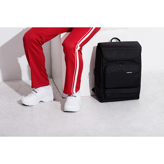 - 메인 포켓에 마그넷 여밈의 플랩이 달린 스퀘어 백팩.