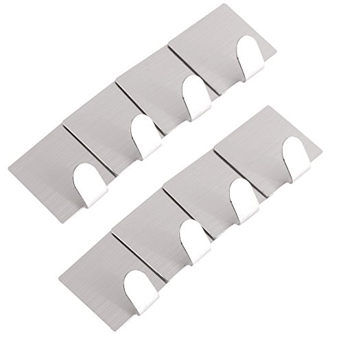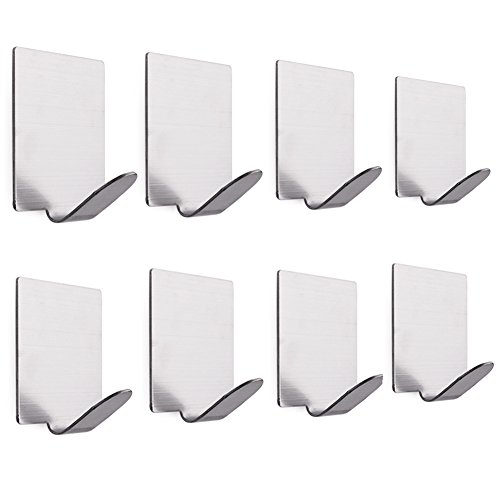8 Pcs Heavy Duty 3M Adhesive Towel Hooks Wall Hangers, Bathroom Robe Coat Hat Door Key Racks, Waterproof Brushed Stainless Steel