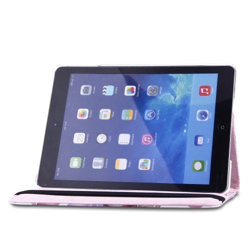 iPad Air 1st (iPad 5) Cover, TOPCHANCES(TM) 360 Degrees Rotating PU Leather Case Smart Cover Stand Support Wake/Sleep Function w Stylus Pen (Pink Lucy Flower)