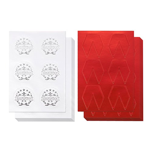 Award Stickers - 48 Silver Certificate Seals with 48 Red Ribbon Shaped Stickers, Excellence Star Stickers for Certificates