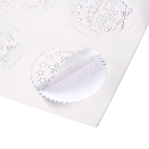 96 Award Stickers - Silver Certificate Seals, Excellence Star Stickers for Award Certificates