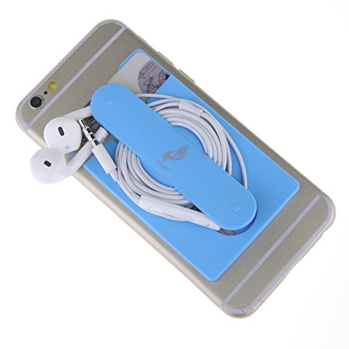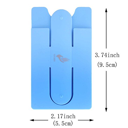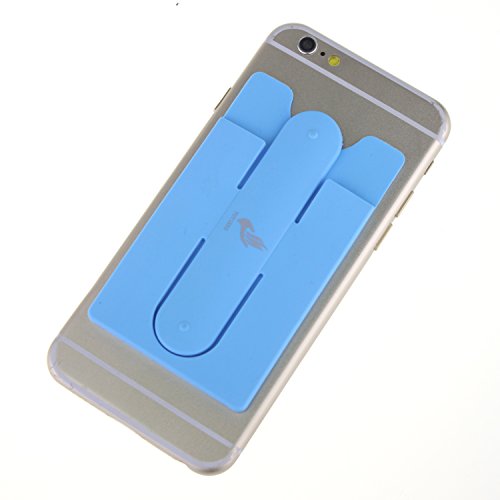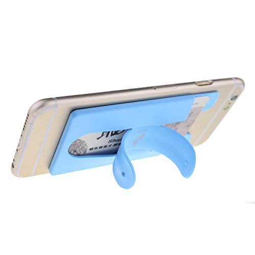 2-in-1 Silicone Adhesive PU Stick-On Wallet Credit Card Id Holder for all Smart Phone Iphone (Blue)