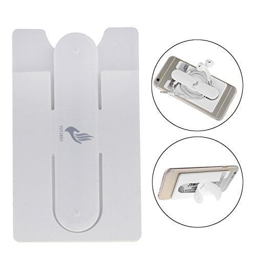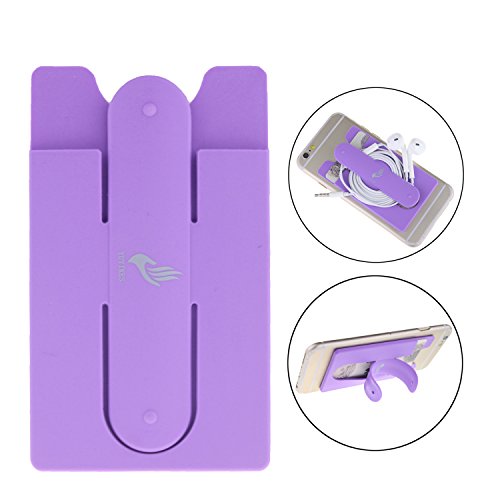 MULTIFUNCTIONAL ONE TOUCH STAND- Securely holds 1 or more ID Cards, Credit Cards, Hotel Room Cards, Money, etc. Can be used to stand phone up for convenient viewing. Can also be used as a headphone cord wind.