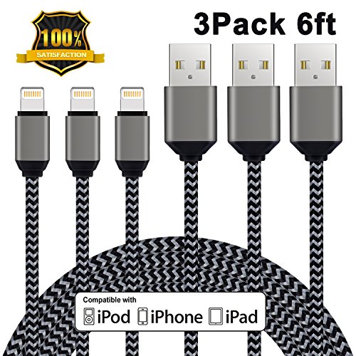 Outstanding Warranty At Atill, we believe in our products. Every purchase is guaranteed by a 12-month warranty-a free replacement or a full refund. If there is any question, please feel free to contact us,and every email would be replied within 24 hours.? ? Wide Compatibility iPhone X/8/8 Plus, iPhone7/7 Plus/6/6 Plus/6s/6s Plus/5/5s/SE iPad 4/5, iPad Air/Air 2, iPad mini 2/mini3/ Mini Retina iPod Nano 7/ iPod Touch 5 Other iPhone devices with lightning port ? 3 PACK 6FT-Ideal length for using at home, in your car, office and more places. Stylish Design--Popular carbon-black color and solid construction match your digital life. ? Kindly Note: 1. Please plug the charging cable tenderly while using. 2. Please do not put the cables together with some inflammable and explosive objects. ? What You Get? 3 x 6ft Lightning to USB Cables