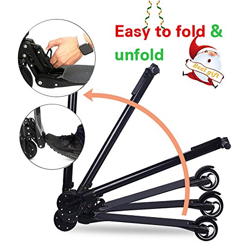EASY CARRY-This folding electric scooter, only 15pounds, is just what you need to zoom around town. Perfect for fun, recreation, or even commuting to school or work. Conveniently 1second folds into tight space to store in trunk, hatchback, or simply carry by hand.