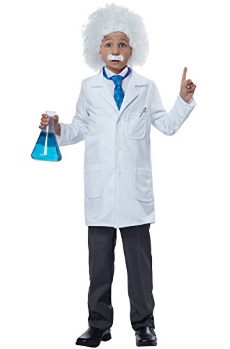 This Albert Einstein/Physicist kids costume comes with coat, dickey, neck tie, wig , moustache. Pants and beaker not included.