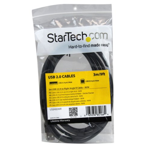 StarTech.com 3-Meter USB 2.0 A to Right Angle B Cable Cord (USBAB3-MeterR)