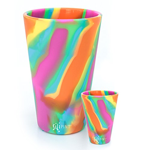 SILIPINT Unbreakable Silicone pint & Shot Glasses (Set Of 2), Hippie Hops Tie-Dyed, 16 Oz pint & 1.5 Oz Shot