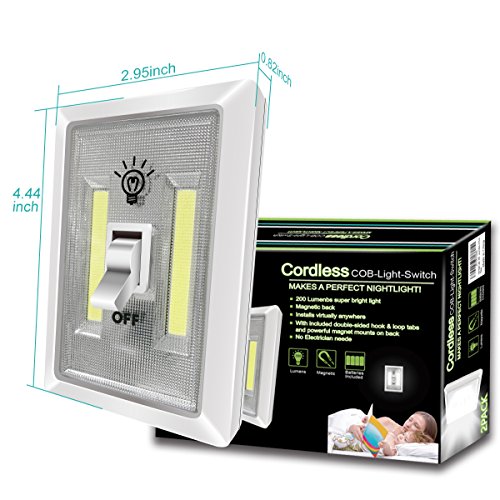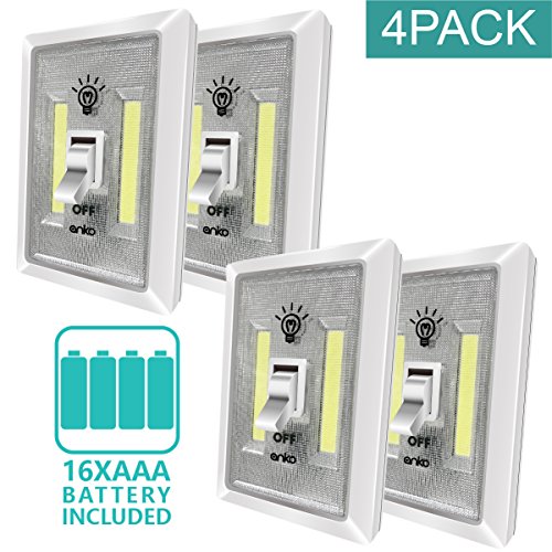 LED Night Light, ANKO 200 Lumen COB Emergency lights Switch Cordless Portable with Battery, Magnetic, Sticker for Wardrobe, Camping, Kitchen, Garage, Attic, Night Reading and More (4 Pack)