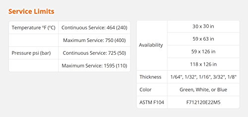 Sur-Seal GS700112530X30 Green Aramid Fibers/NBR 7001 Non-Asbestos Compressed Sheet, 30" Length, 30" Width, 0.125" Thick