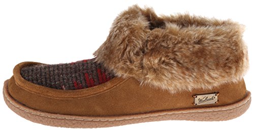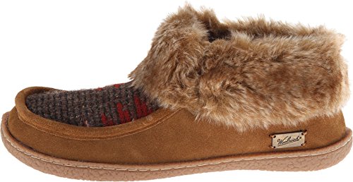 Product DescriptionFleece lining. Faux fur cuff. Cushioned midsole. Durable indoor/outdoor sole. Woolrich wool and suede upper made in USA. Imported.0