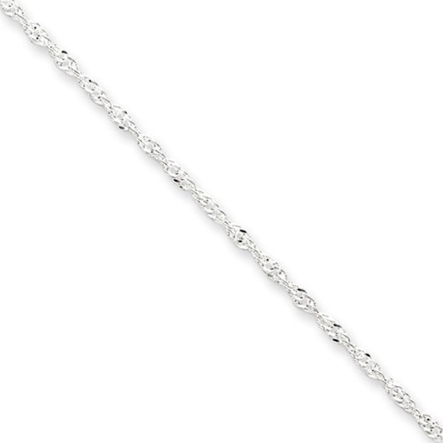 Accessorize your ankles with a shiny bracelet that looks great alone or layered. This 1.5mm, Singapore chain made from glistening, sterling silver is adjustable in length from 9 to 10 inches and fastens with a spring ring clasp. Made in ItalyFeature