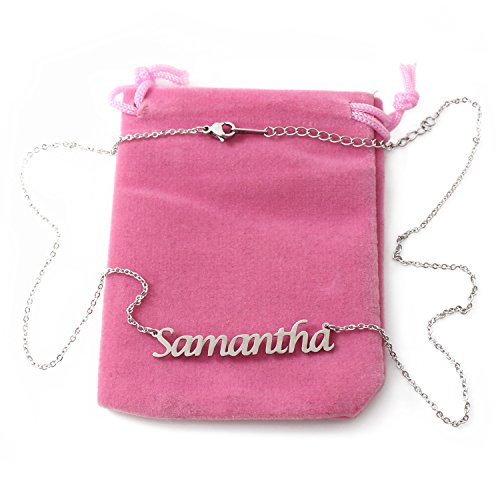 A beautiful stainless steel name necklace perfect as a gift for Anniversary, Birthday, Thank You, Wedding, Engagement or any other special occasion. The necklace has an adjustable chain ranging from 16" to 19" in length, with a weight of between 8 - 10g.
