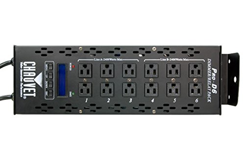 6-channel DMX dimmer/relay pack • Features a variable electronic dimmer (0-100%) • Optional square, switch or linear dimming curves for each channel • Dual 20 A power lines (requires 2 separate circuits on the same phase) • Increase options with an individual switch, circuit breaker and plug per line • Accommodates different input voltages simultaneously • Includes 2 Edison plugs per channel