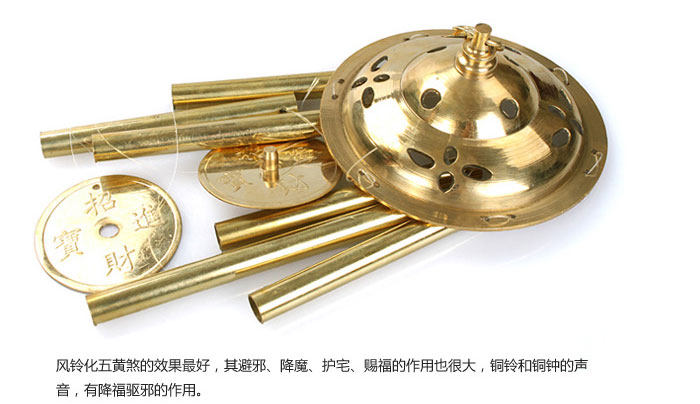 ? ? ? In feng shui , the role of copper bells can be restrained five yellow evil . Where fleeting five yellow flew the gates, doors , should be linked to copper wind chimes defends . Because of five yellow evil territory , so to hang a gold copper wind chimes can vent rustic. Golden bells swing can enhance the gas , the gas vent five loess shake- gold evil . Ancient bells with evil, defends , the role of security and peace , whether or bell chimes , Lucky defends have effect, but chimes of five yellow evil best, its evil, fell monsters , nursing home, thanks Fu is also a great role , bells and bell sounds, there is blessing evil role. Also commonly used in feng shui items . Bells, small ones for the bell , the big bell , with evil, defends , the role of security and peace , whether or bell bells , Lucky defends have effect, but five yellow bells of the most evil effects well, a feng shui wind chimes for commonly used items of five yellow two black or commonly used in the car, can be evil defends reduce accidents due to poor fierce disaster caused by the gas field .
