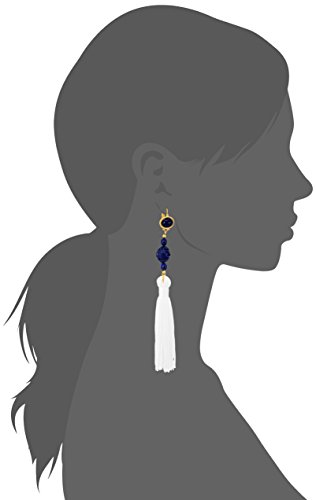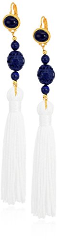 Kenneth Jay Lane Lapis Carved Bead White Tassel Drop Earrings