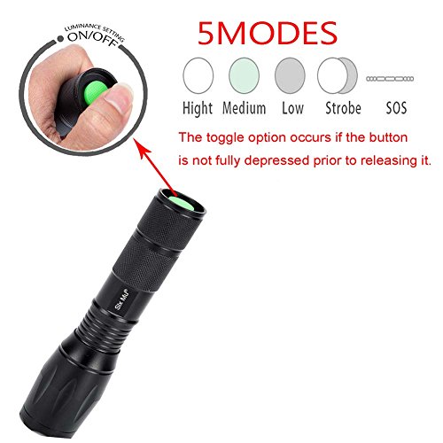 FIVE light switch mode: Full Brightness, Medium Brightness, Low Brightness, Tactical Security design with Disrupter Strobe and SOS Function