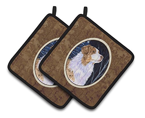 Caroline's Treasures Starry Night Australian Shepherd Pair of Pot Holders SS8375PTHD, 7.5HX7.5W, Multicolor