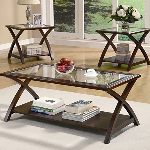 - Feature : Set includes 1 coffee table and 2 end tables / Wood frame with beveled glass top / Modern X- pattern designed / Coffee Table: 48L x 24W x 19.25H / End Table: 24L x 24W x 22.5H