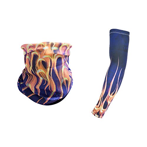 Product DescriptionMaterial:Polyester Microfiber Size: Sleeves - Length 41cm; Upper arm circumference 24cm; Lower arm circumference 18cm cm Magic Turban - one size Gender:Unisex Color: Multicolor, 6 Styls Available Package Included: 1* Riding scarf 1* Ice silk sleeves0