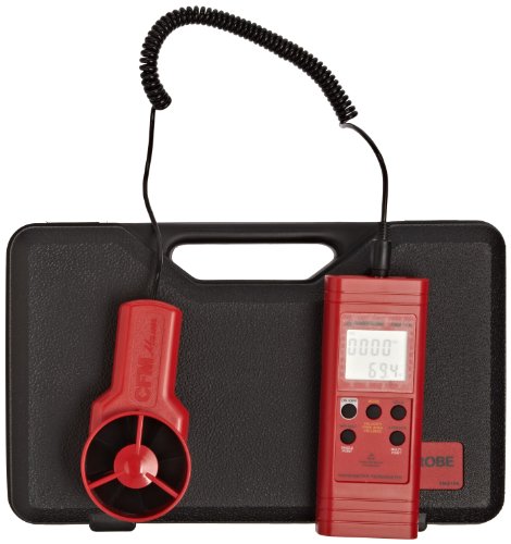 - Measures air velocity in feet per minute (ft/min), and meters per second (m/s), air flow volume in cubic meters per second (CMS) and cubic feet per minute (CFM), and dual-scale thermistor temperature sensor measures temperature in F and C