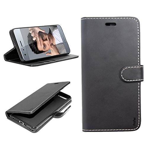 Huawei Mate 10 Hulle, Profer [Premium Leder Serie] Schutzhulle PU Leder Flip Tasche Case mit Integrierten Kartensteckplatzen und Stander fur Huawei Mate 10 (Leder-Schwarz)