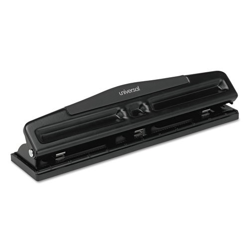 -. Title : Universal 12-Sheet Deluxe Two- & Three-Hole Adjustable Punch, 9/32" Holes, Black