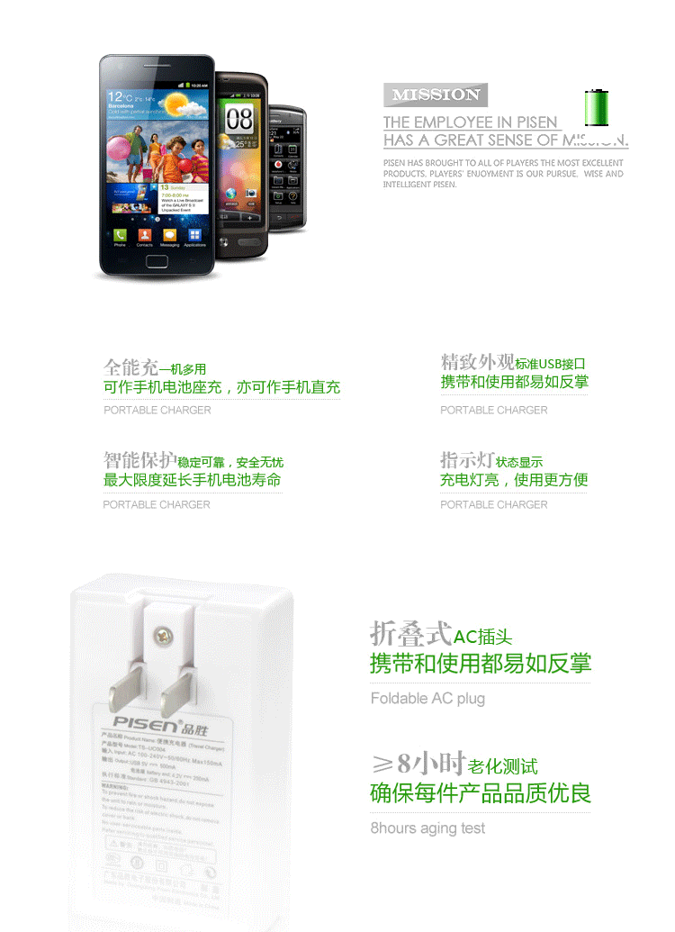 品胜智能手机充电器(商务之星)