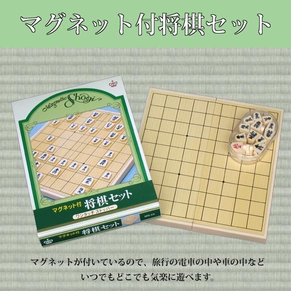 マグネット付きの将棋セットです。マグネットが付いているので、旅行の電車の中や車の中などいつでもどこでも気楽に遊べます。