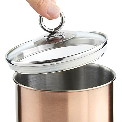 VonShef Set of 3 Copper Tea, Coffee & Sugar Canisters/ Kitchen Storage Jars with Glass Lids - Stainless Steel
