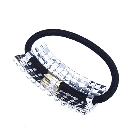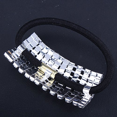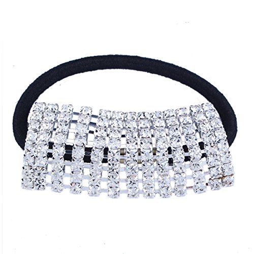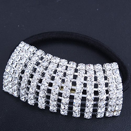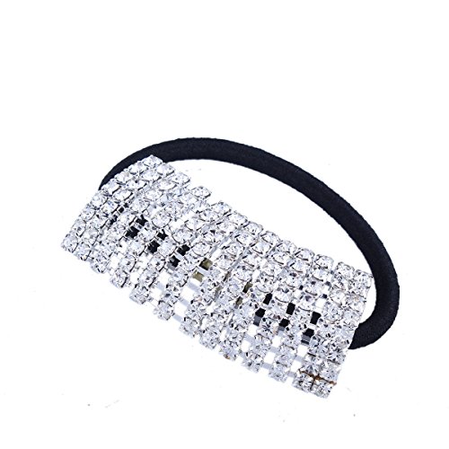 Santfe Silver Plated Rhinestone Crystal Stones Stretch Elastic Band Hair Tie Ponytail Holder