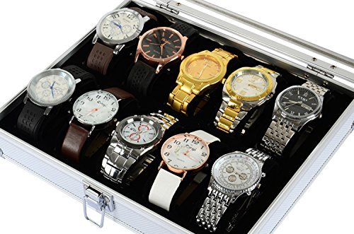 America Phoenix Large 12 Grids Watch Display Jewelry Case Box Storage Holder Leather and Aluminius