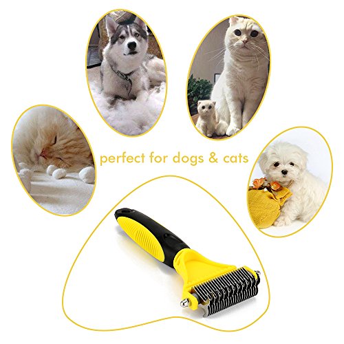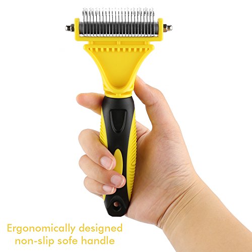 ❤ GREAT VALUE & 100% SATISFACTION! 30 Days money back guarantee and 6-month warranty. Just contact us if you have any question, or if you are not satisfied for any reason and we will replace it or issue you a full refund. This tool is de-matting comb, de-shedding tool & undercoat rake all at the same time. Clear instruction is printed at the back of the package.