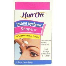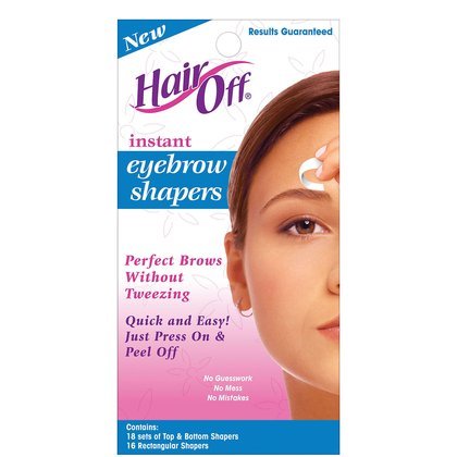 Removes hair instantly and easilyPre-cut for flawless eyebrowRegrowth appears slower and less noticeableDiscover beautiful eyebrows without the pain and guesswork of tweezing. Hair Off instant Eyebrow Shapers are fast, easy and mistake-proof.The shapers are pre-cut and pre-shaped so that when placed under and/or over the eyebrow, they remove the hair to the precise contour of a perfectly shaped eye brow. Each package contains 18 sets of Shapers consisting of 2 cold wax strips, one upper (for shaping and removing hair just above the brow) and one lower (for shaping and removing hair just below the brow) and 16 rectangular shapers (for between the brows, chin and upper lip). Simply place the strip in position, press on, then peel off. Shapers remove not only the longer, thicker hair, but also the fine, tiny hairs so difficult to see and even more difficult to grip with tweezers. The results will be flawless!