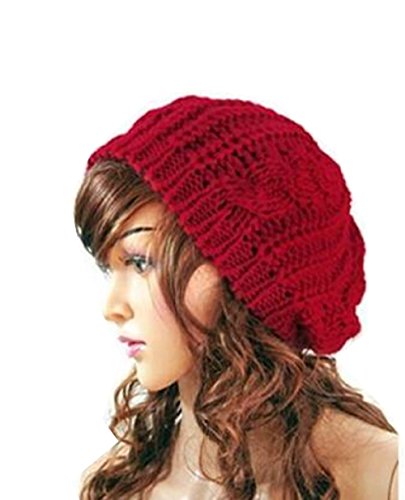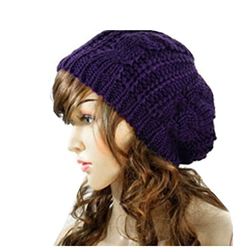 SunHouse New Winter fashion Women Beret Braided Baggy Beanie Crochet Knitted Hat Cap (Purple)