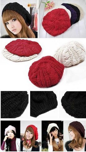 New Winter fashion Women Beret Braided Baggy Beanie Crochet Knitted Hat Cap