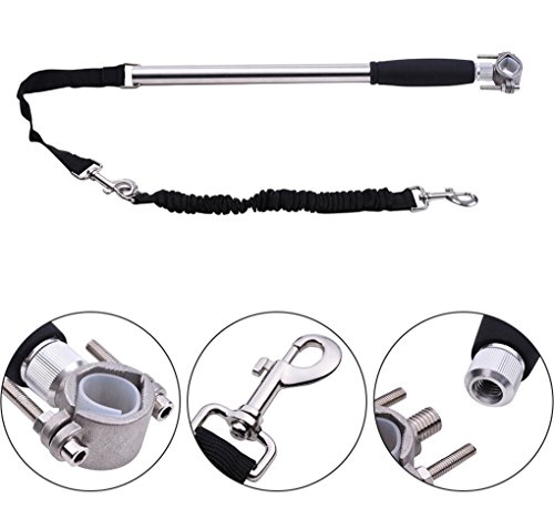 Studio : clsw Publisher : clsw Binding : Misc. Product Description Features: High quality stainless steel, comfortable silicone hand grip, a perfect dog training leash. A fixed seat lock and strong elastic leash, provides a safer ride for you and your dog. Leashes natural length 15.4 inch, stretching up to 31.5 inch approximately. Detach the seat lock in seconds and it can also be used as a walking leash. Comes with a spanner to fix the seat lock more securely. Specifications: Color: SilverBlack Material: Stainless Steel Item Size: about 42 * 2 * 2cm/ 16.5 * 0.8 * 0.8in (the rod) Item Weight: 511g/1.1lb Package List: 1 * Dog Leash 1 * Spanner 0