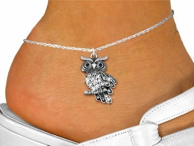 -. Title : Detailed Silver Tone And Austrian Clear Crystal Owl Charm And Anklet